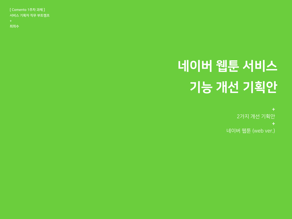 [코멘토 서비스 기획 수업] 1주차 과제_네이버 웹툰 서비스 개선 기획안인터랙션_UXUI_기획/단일 프로젝트+공모전 2020. 3. 12. 21:40